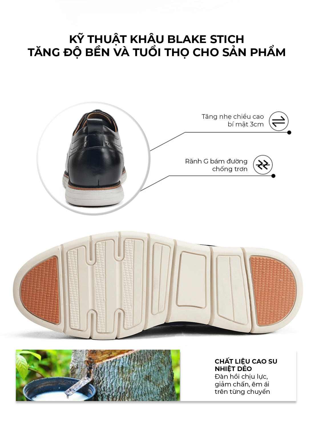 - Chất liệu đế: Cao su (Đàn hồi, bám tốt))