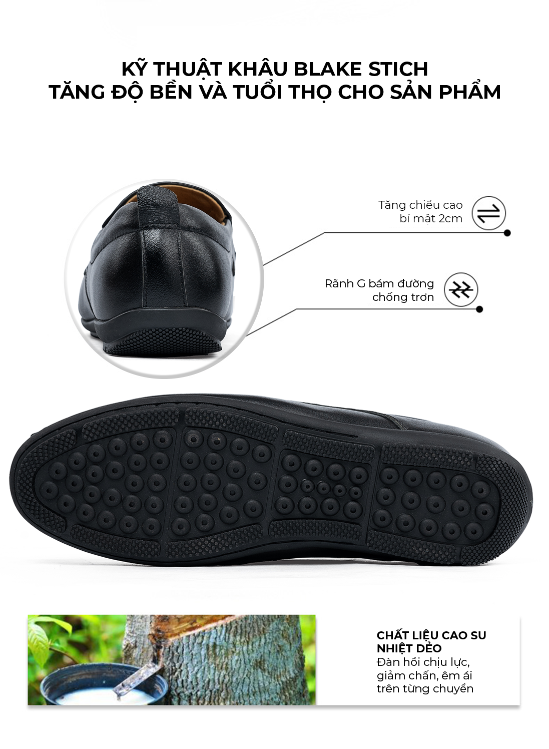 - Chất liệu đế: Cao su (Đàn hồi, bám tốt))